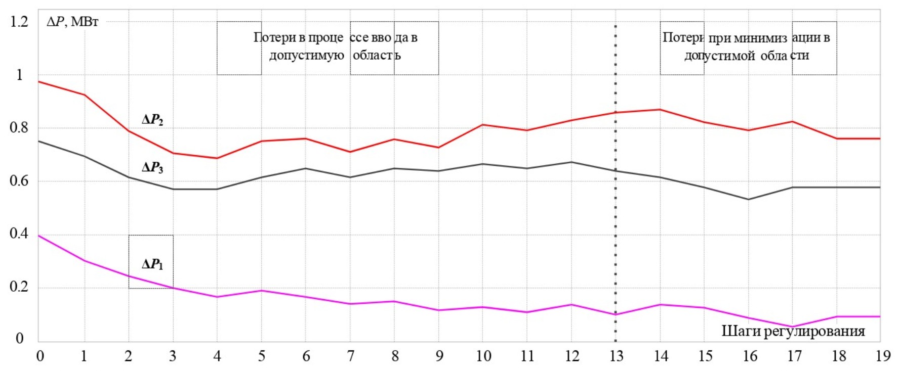 В отличие от баланса активной мощности в сети, имеющего общий характер и контролируемого всеми участниками процесса по отклонению частоты, балансы реактивной мощности имеют локальный характер и контролируются по уровням напряжения в конкретных районах. Кроме того, здесь более обостренно проявляются противоречия в целях субъектов, участвующих в регулирования напряжения. Так, для сетевой компании предпочтительно повышенное напряжение в сети, способствующее увеличению потребления энергии электроприемниками, что увеличивает пропуск энергии по сети, и, при этом, снижаются относительные нагрузочные потери при передаче электроэнергии. Потребителям предпочтительно пониженное напряжение (процентов на 5), что снижает электропотребление и увеличивает ресурс оборудования [5,6]. В таких условиях регулирование напряжения множествами агентов разных субъектов будет приводить к созданию компромиссных режимов, учитывающих интересы разных субъектов.