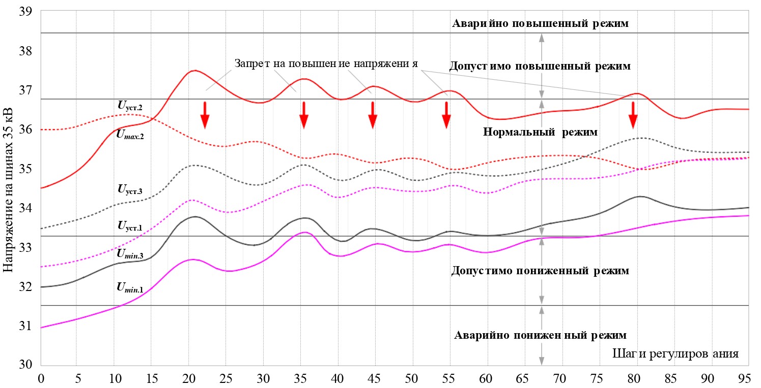 Принятие решений агентами по изменению баланса реактивных мощностей в контролируемой зоне, коэффициентов трансформации базируется на единой классификации состояний по напряжению контролируемого района сети, представленной в табл. 2.