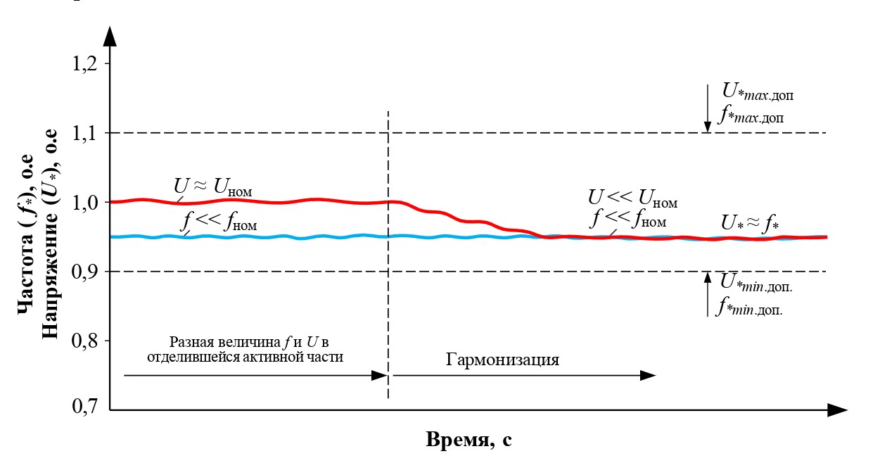Полный процесс восстановления целостности и нормального режима распавшейся на части электрической сети можно представить следующим образом: