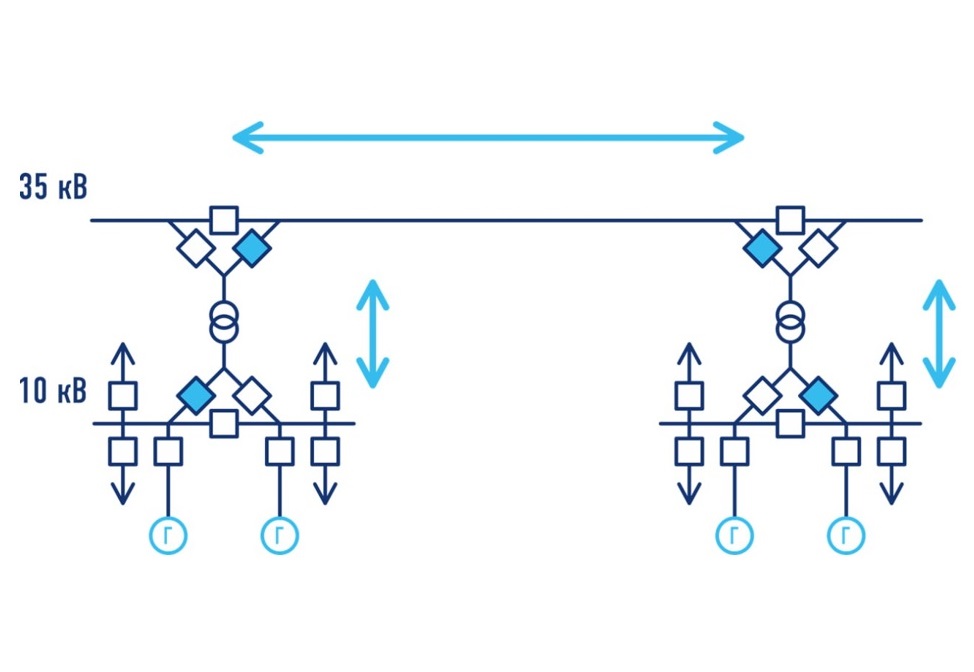 - адаптивное присоединение ― интеграция объектов малой генерации в централизованную энергосистему на генераторном напряжении, автоматическая конфигурация схем присоединения;