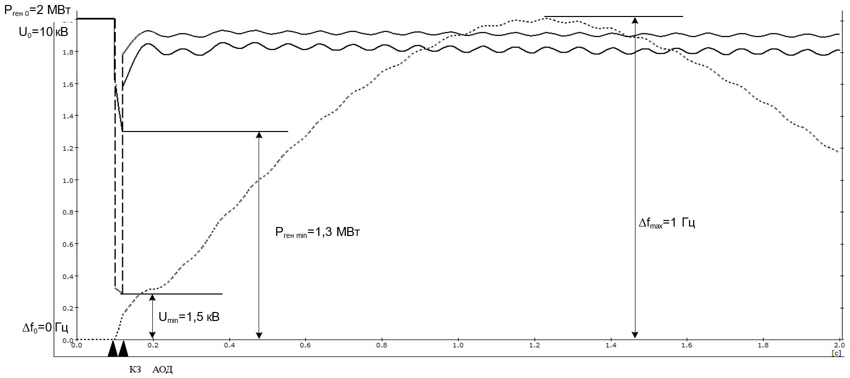- Участия внешней энергосистемы в компенсации динамических небалансов мощности, возникающих в Минигрид, в т.ч. обеспечение успешности пуска крупной двигательной нагрузки;