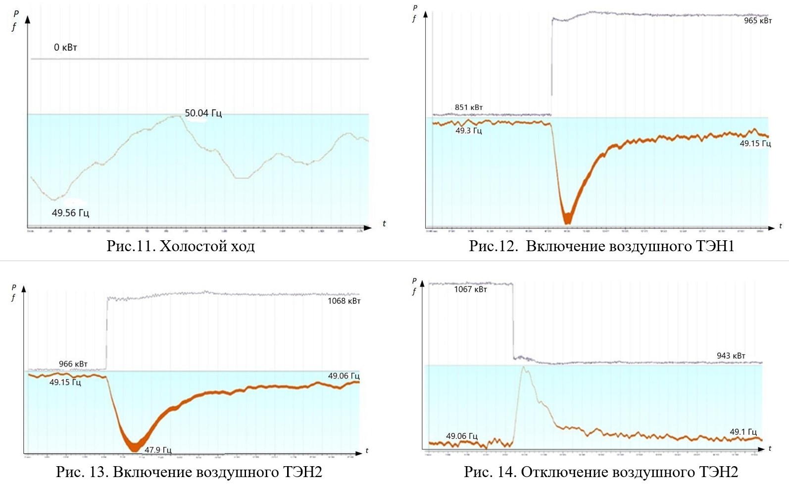 Всего проведено 14 опытов по подключению и отключению индукционных и воздушных ТЭНов. Результаты в целом подтвердили выполнение всех требований к ОПРЧ: